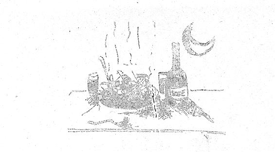 Beim abendlichen Brainstorming, der Bilanz des Tages, dem die widerstandsfähigsten Naturen spät in der Nacht beiwohnten, stellten wir fest, daß sich die Lehrer bei dieser Feier die Getränke der Schülervorräte ungeniert zu eigen gemacht und dezimiert hatten. Klaus: "Ausbeutung des Schülerstoffs". Peter, unserem Sekretär, flossen an diesem Tag die Worte noch lockerer als sonst aus der Feder und Rolf erfreute alle mit einem gekonnten Vortrag von Hans Albers "La Paloma".